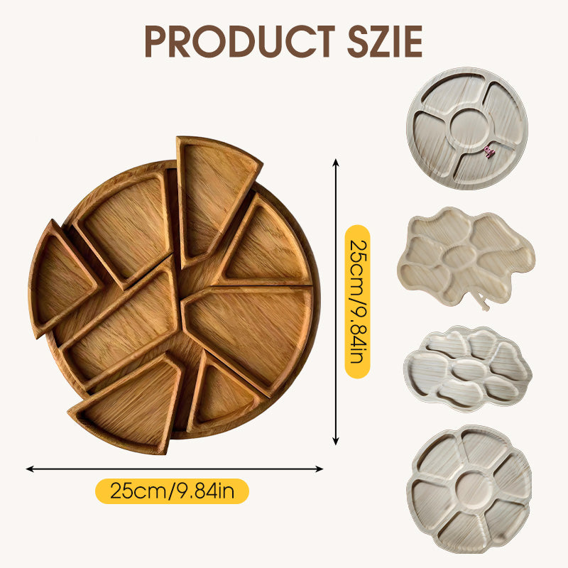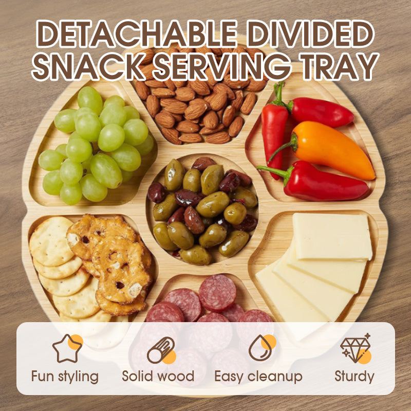 VERWIJDERBARE VAKKEN – De afneembare delen maken serveren en schoonmaken moeiteloos. Elk vak kan afzonderlijk worden verwijderd, zodat u gemakkelijk snacks kunt bijvullen of voedingsmiddelen kunt scheiden zonder dat smaken zich vermengen. Dit doordachte ontwerp helpt de versheid te behouden en vereenvoudigt de opslag wanneer het dienblad niet in gebruik is.