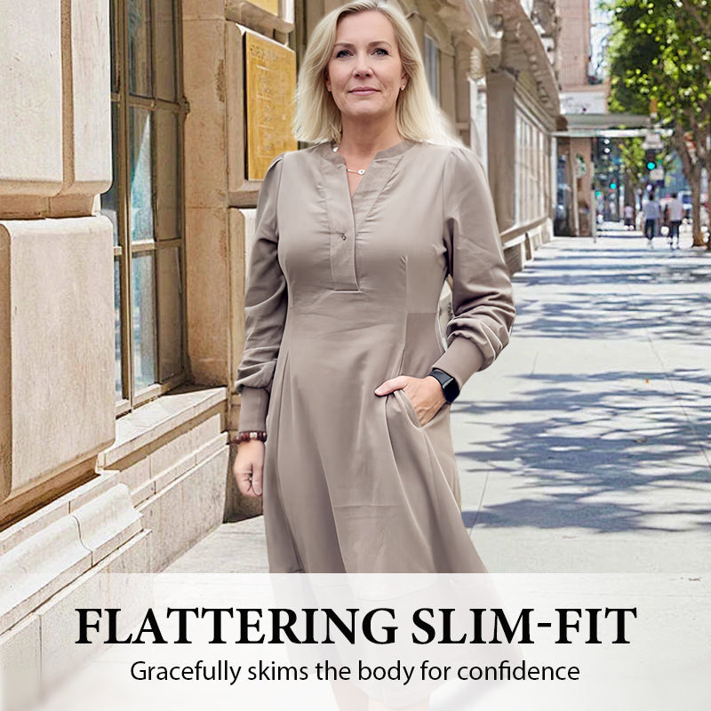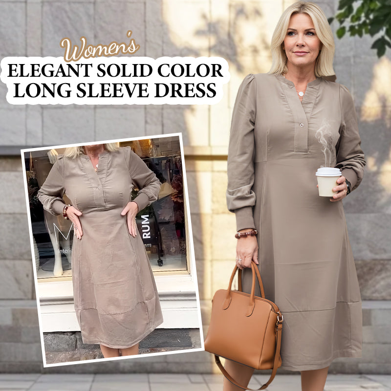 🎉2025 Nieuwe producten Hot Sale✨Elegante effen kleurige jurk met lange mouwen voor dames