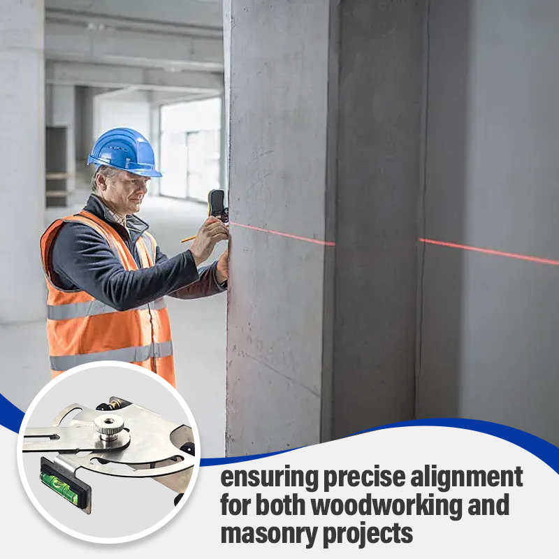 180 GRADEN VRIJ DRAAIBAAR VOOR NAUWKEURIGE UITLIJNING: Het gereedschap is voorzien van een soepel 180 graden draaimechanisme met een verstelbare knop, waardoor snel hoekaanpassingen voor verschillende taken mogelijk zijn. Dit ontwerp maakt meerdere gereedschappen overbodig, wat tijd bespaart en tegelijkertijd zorgt voor een nauwkeurige uitlijning voor zowel houtbewerkings- als metselwerkprojecten.