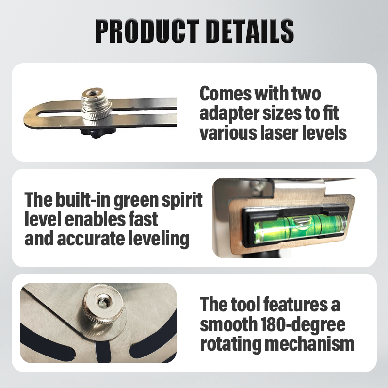 UNIVERSELE COMPATIBILITEIT MET MEEGELEVERDE ADAPTERS: Wordt geleverd met twee adaptermaten voor verschillende laserniveaus, waardoor het veelzijdig inzetbaar is voor verschillende apparaten. Het veilige bevestigingssysteem houdt de laser stevig op zijn plaats tijdens het gebruik, waardoor verschuiven of verkeerde uitlijning wordt voorkomen.