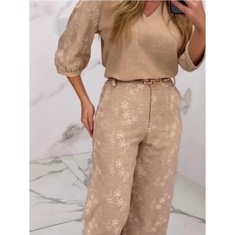 VEELZIJDIG KLEDINGSTUK – De set is ontworpen als complete outfit, maar kan ook afzonderlijk worden gedragen. Combineer de geborduurde top met een jeans voor een casual chique look of draag de broek met een eenvoudige blouse voor een ingetogen elegantie.