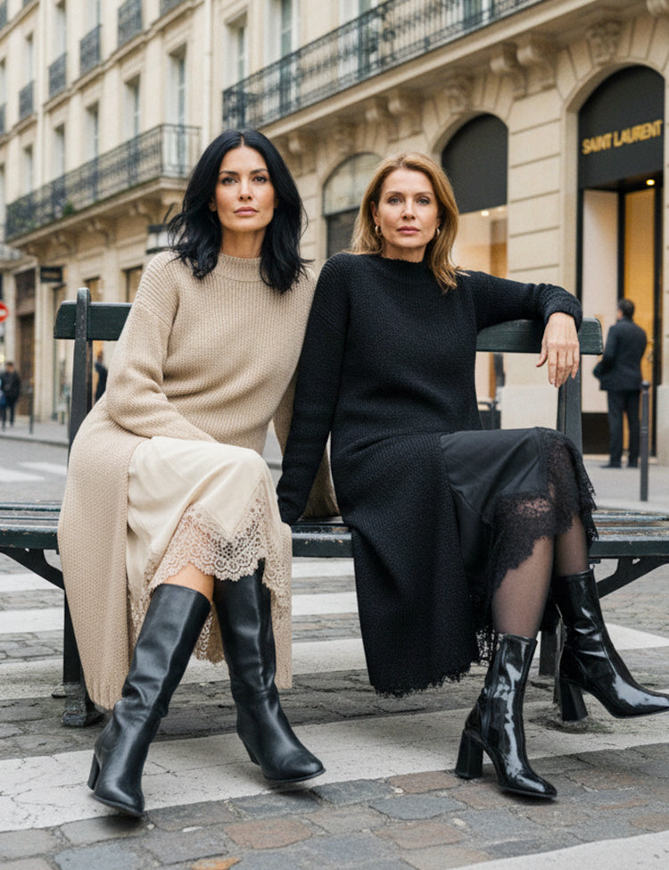 ELEGANTE GELAAGDE STIJL: Omarm een chique, verfijnde esthetiek met deze zorgvuldig ontworpen tweedelige ensemble. De lange, zachte pullover valt naadloos over een soepel vallende jurk met spaghettibandjes, waardoor een moeiteloos samengestelde look ontstaat. Deze combinatie biedt zowel warmte als een duidelijk fashion statement, perfect voor de overgang tussen de seizoenen.